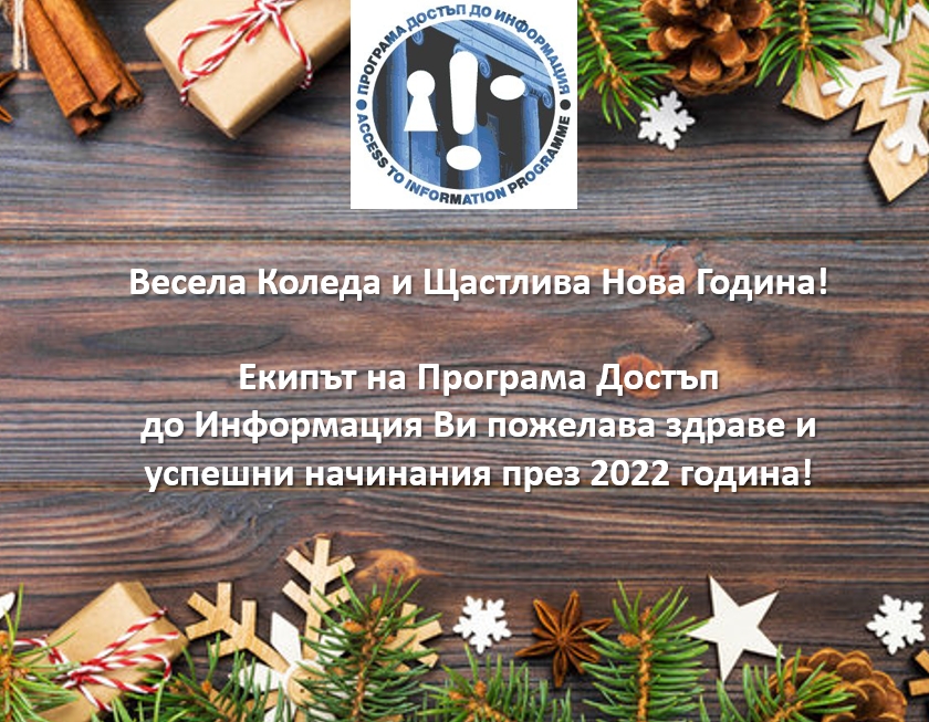 Екипът на Програма Достъп до Информация Ви пожелава здраве и успешни начинания през 2022 година!